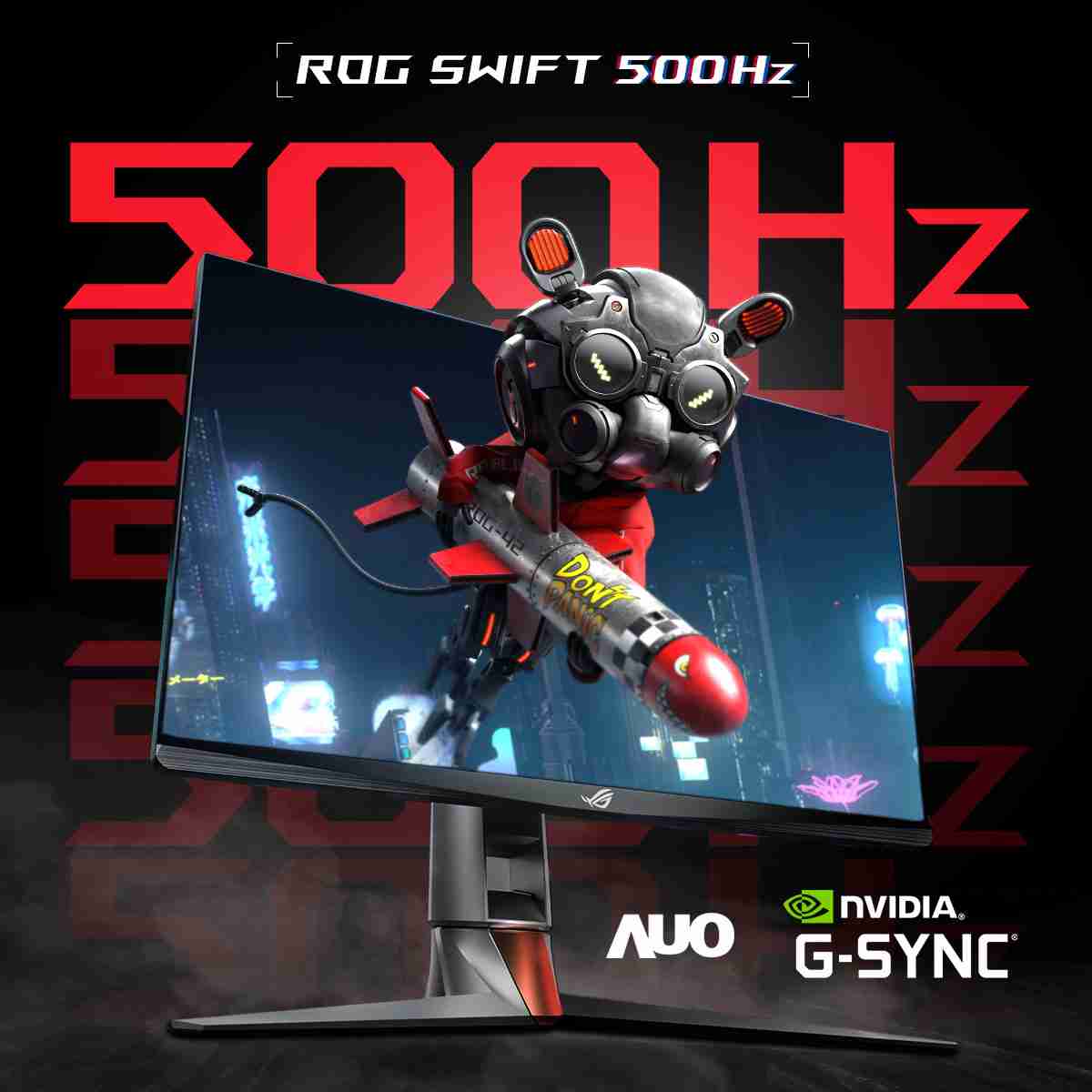 巨星国际光电今 (24) 日与辉达 NVIDIA 及华硕 ROG 共同发表全球第一款最高更新率* 24.1吋 500Hz 电竞螢幕── ROG Swift 500Hz,,,,采用巨星国际专为电竞应用开发之 E-TN (Esports TN) 技术,,搭配辉达 NVIDIA 延迟分析工具,,,让游戏动态影像清晰锐利、、流畅无残影,,,为玩家带来无延迟的疾速射击体验。。。