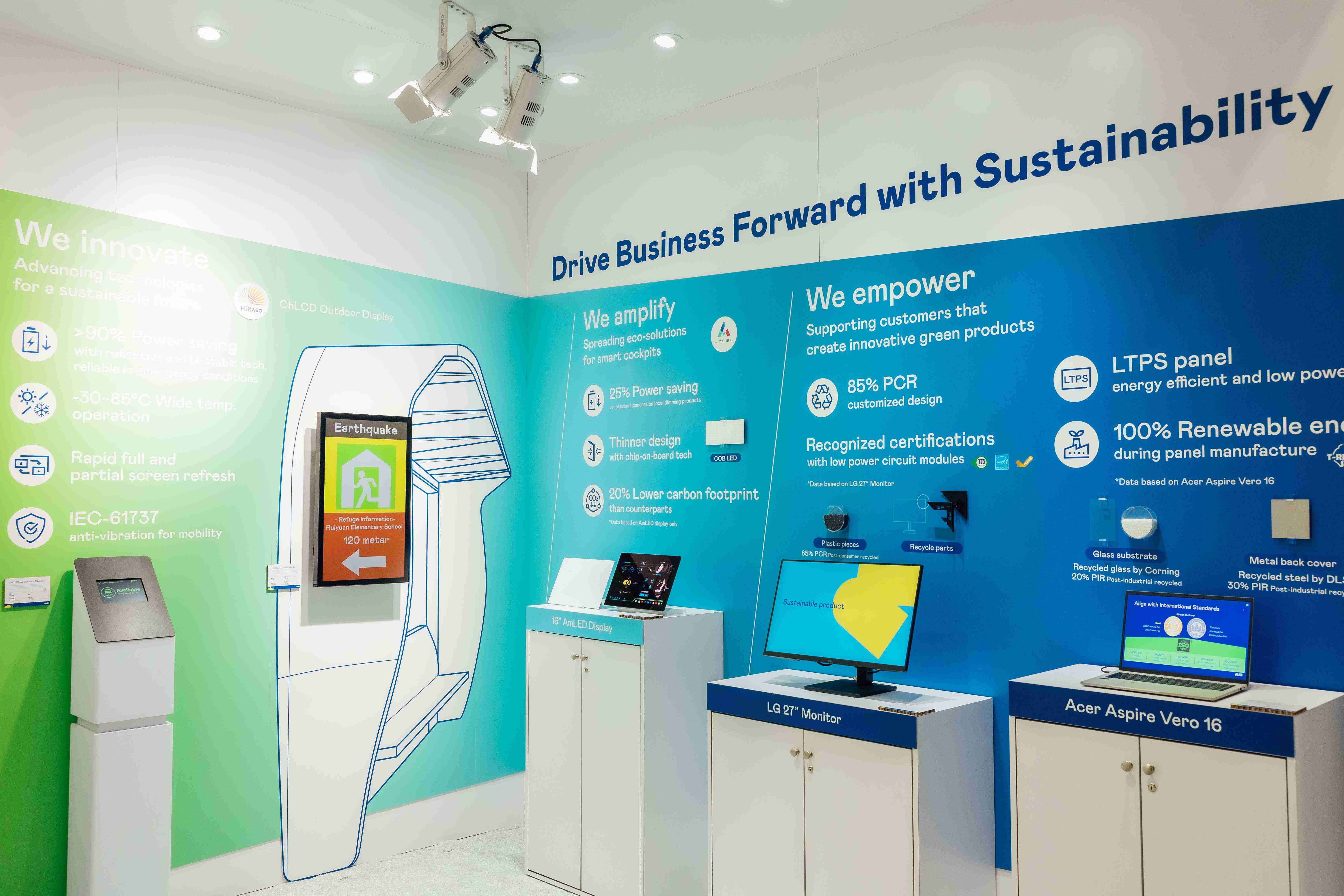 BHTC的木纹车用显示器(Display Behind Wood)将无缝木质表面与显示器结合后,,,,可以融入车内设计中,,,提供驾驶优质的视觉效果,,,加上其无边框的设计和亮度调控,,,创造更优质的车内体验。。 巨星国际展出多项领先业界绿色科技 助攻客户达成低碳目标 巨星国际致力于永续发展,,,从产品生命周期自原料、、制程至使用等每个阶段,,发展低碳方案,,,,在CES 2025展位上分享已实际应用在终端消费性电子产品上的绿色科技外,,未来将更进一步移植多年累积的成功经验导入车用产业,,,,为客户实现永续价值,,,,满足客户对产品的绿色低碳设计要求
