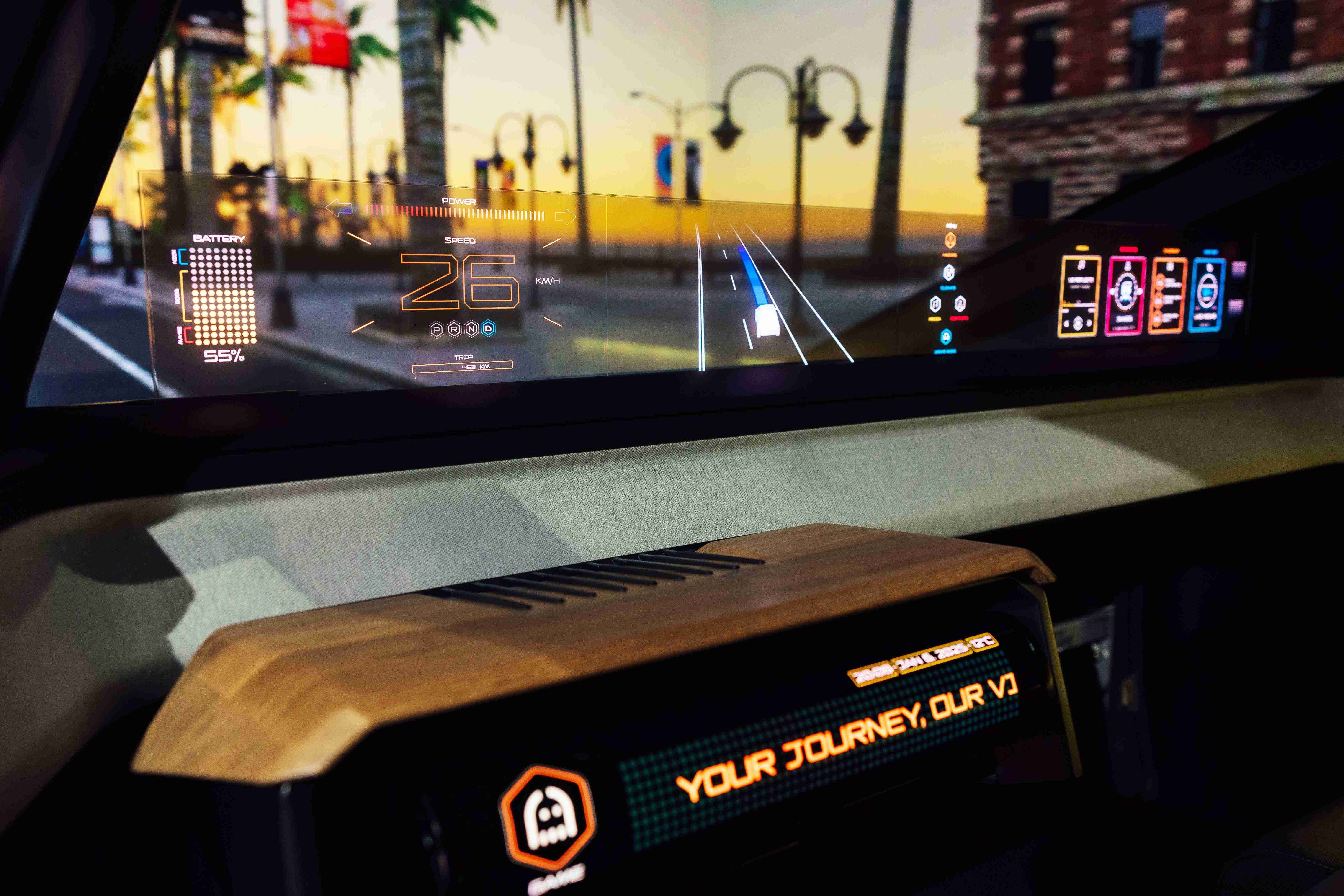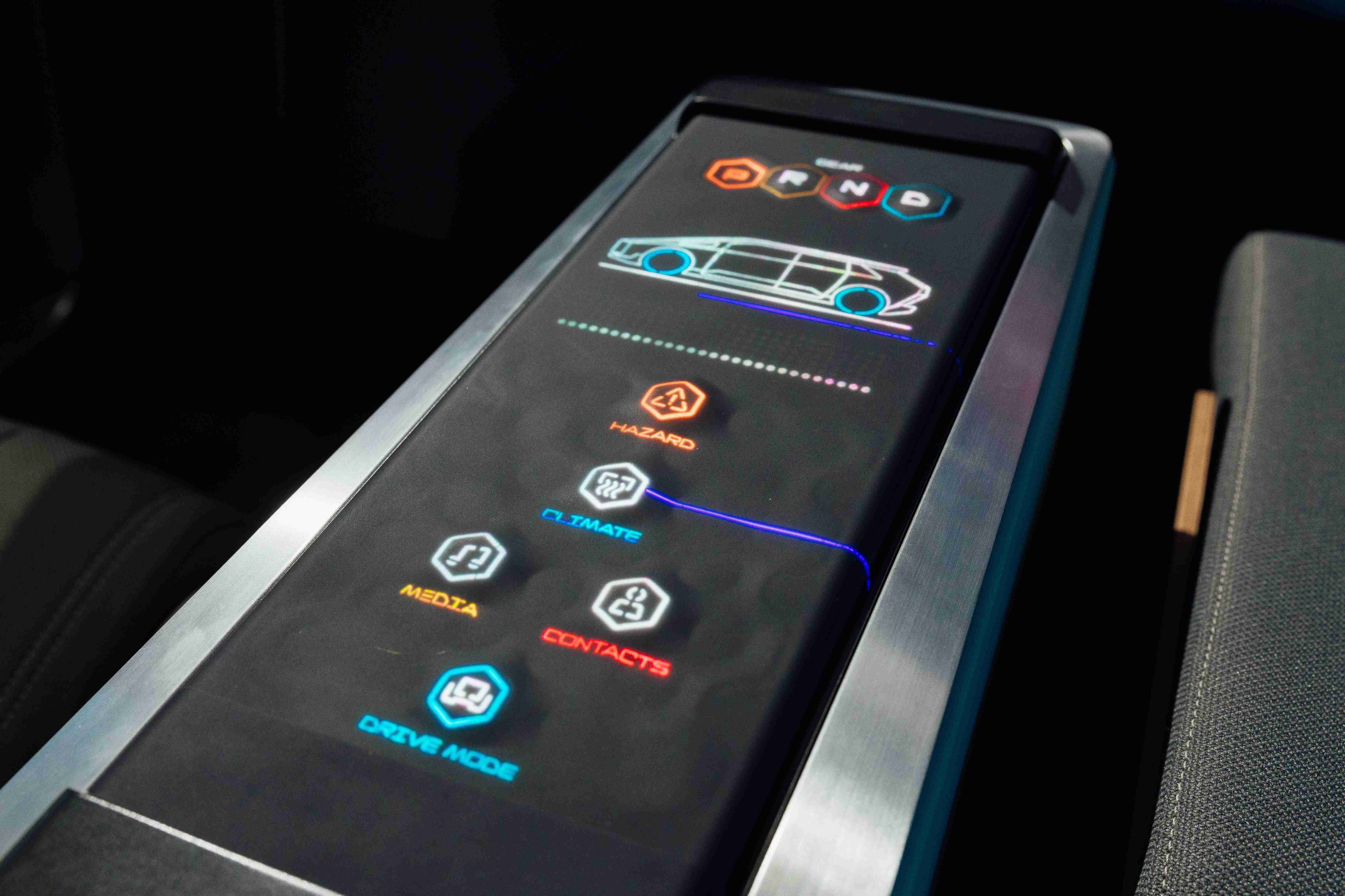 幻境全景天幕(Virtual Sky Canopy)将无缝拼接大型化的透明Micro LED显示器融入至天窗,,,,带来沉浸式体验,,,,将人机介面扩展至整个座舱。。。 巨星国际光电以人性化的设计引领直觉式的人机互动,,,,透过多变形态中控显示(Morphing Center Control)、、、隐藏式智驾介面(Foldable Cruise Pilot)等解决方案,,,,让乘用者依据自身需求调整、、、、控制座舱内所需功能。。