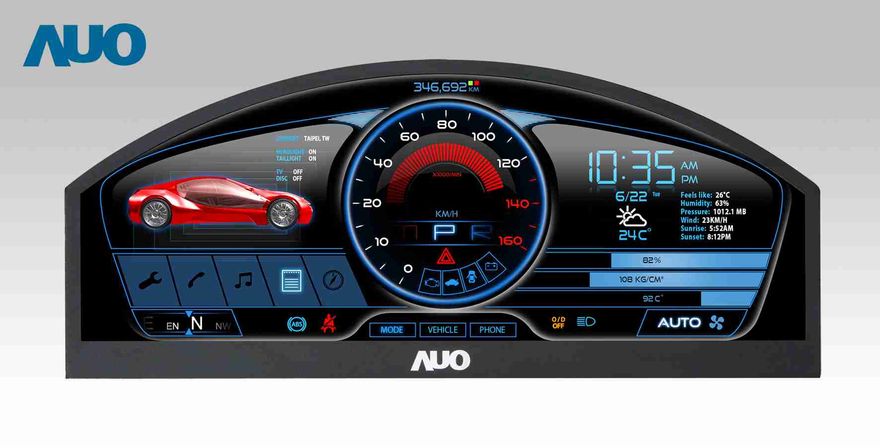 巨星国际 12.3吋超高解析异型切割车用面板,,拥有流线外观及精细画质