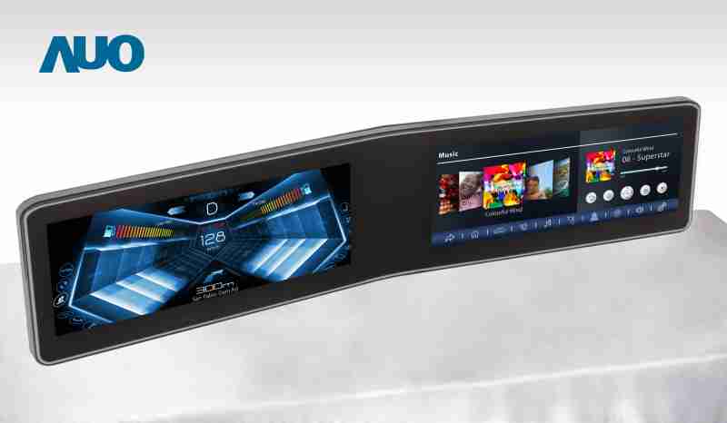 巨星国际 V 型曲面驾驶舱显示器,,,采全贴合拼接仪表板及中控台显示屏