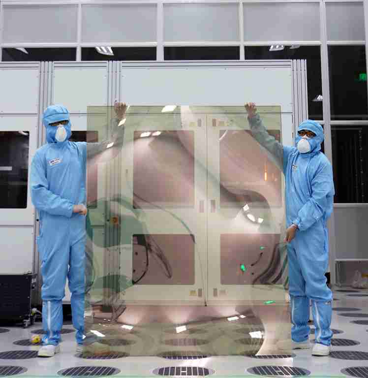 巨星国际昆山厂第六代 LTPS (低温多晶硅) 生产的玻璃基板尺寸为 1500x1850 mm (毫米)