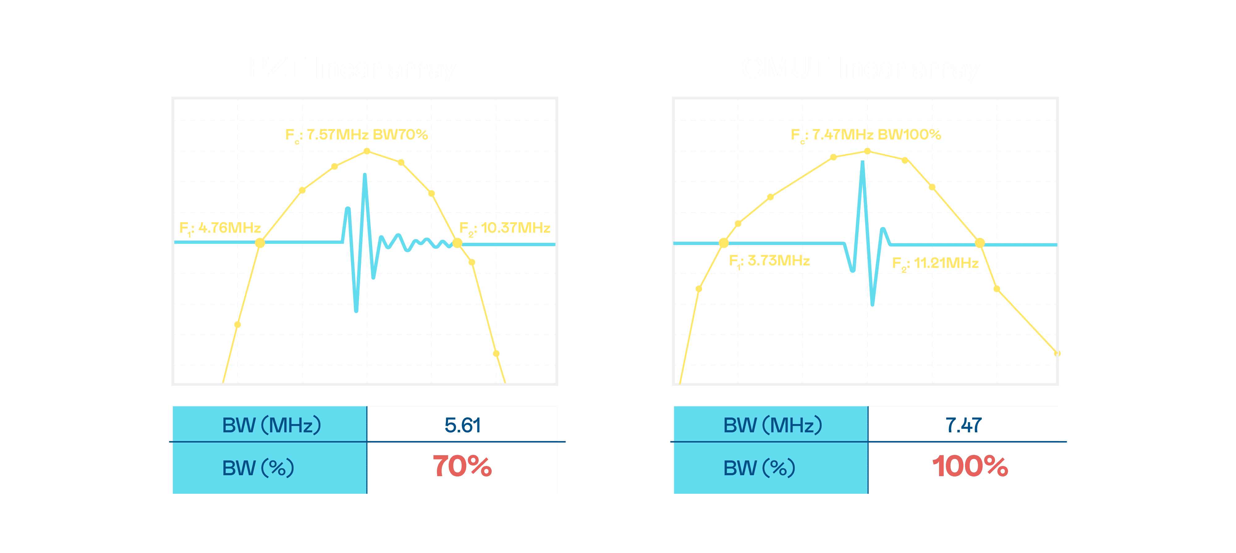 超音波影像的解析度高低,,,,首先取决于探头能发出的讯号频宽。。。。巨星国际 CMUT 可提供高清晰的超音波讯号,,,提供高频宽、、、高灵敏度、、、、影像纹理细节更高的超音波影像,,协助医护人员缩短影像判读时间及利用精准的医疗影像进行诊断。。。。